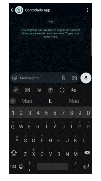 Você fala com o Controlado App direto pelo WhatsApp, do seu jeito e a nossa I.A. (Inteligência Artificial) irá te ajudar a registrar suas receitas e despesas de uma maneira muito prática, tudo por troca de mensagens.